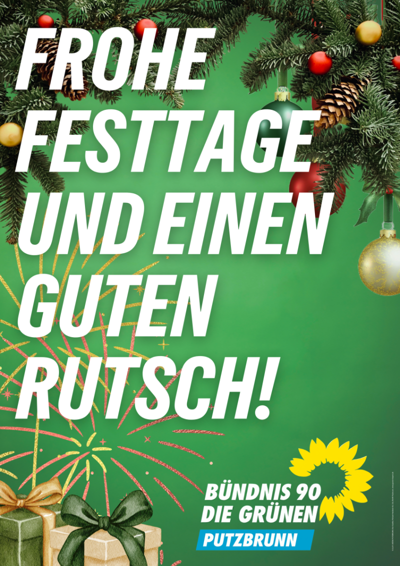 2025 neigt sich dem Ende zu – ein gutes Jahr für uns GRÜNE in Putzbrunn. Unser kleiner Ortsverband ist kräftig gewachsen, wir blicken auf zahlreiche interessante und gut besuchte Veranstaltungen zurück und sind können auf die erfolgreiche Arbeit unserer grünen Gemeinderäte stolz sei.